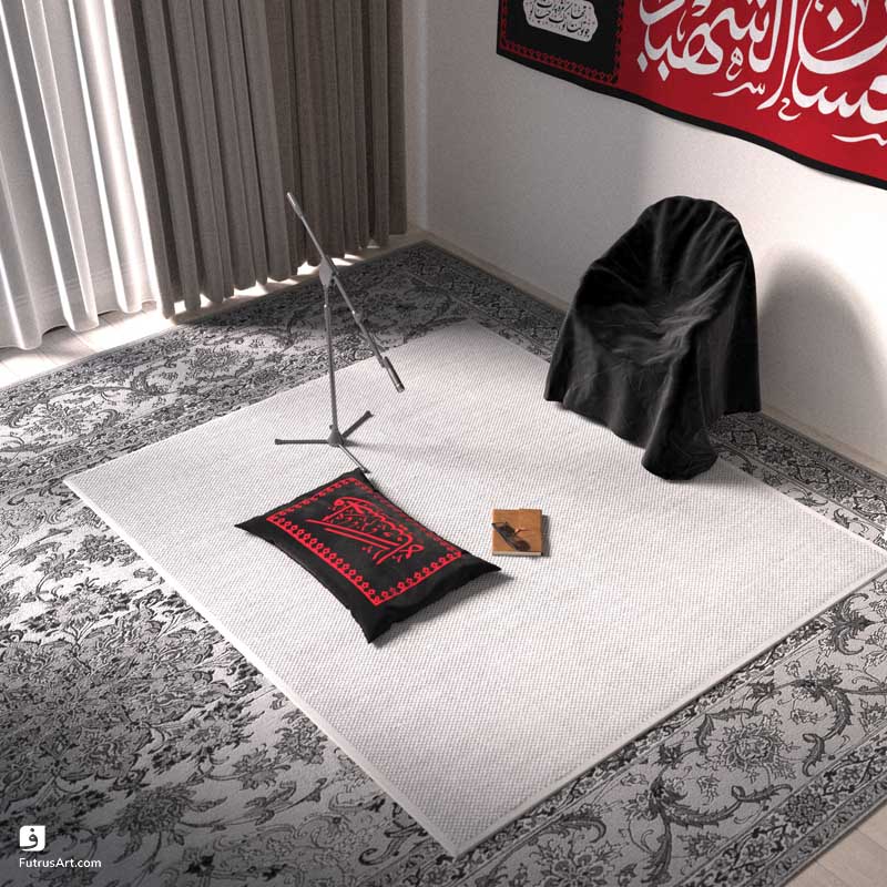 سوزخوانی کیلیے تکیه غلاف جو مجلس کے ماحول سازی میں نمایاں کردار ادا کرتا ہے