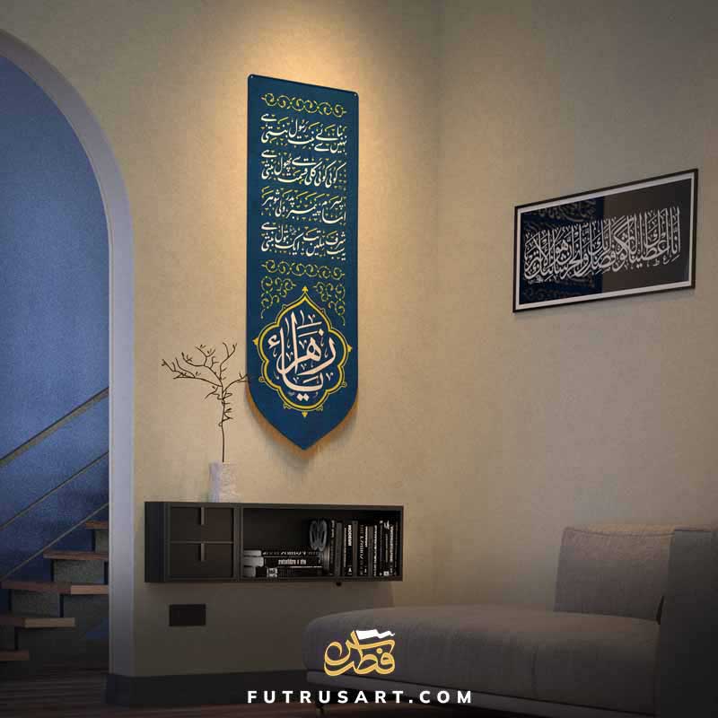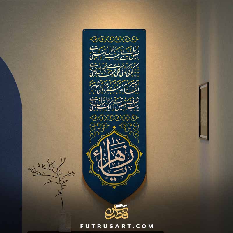 The Banner comprises Zikr “Ya Zahra (a)” and famous Urdu poetry regarding Lady Fatima (a) in blue color.